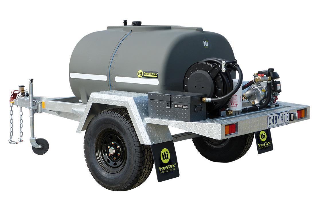 It features a 1,000L polyethylene tank with a LiquidLocker™ baffle system to reduce diesel movement during transport. A 12V Piusi pump (60L/min), housed in a lockable chequer plate toolbox, works with a 6 metre delivery hose and an auto shut off nozzle to ensure fast and easy refueling. This trailer meets Australian Standards AS1940-2004 and AS2809.2-2008 and is available in both braked and unbraked versions. Thus making it ideal for use on farms and public roads.